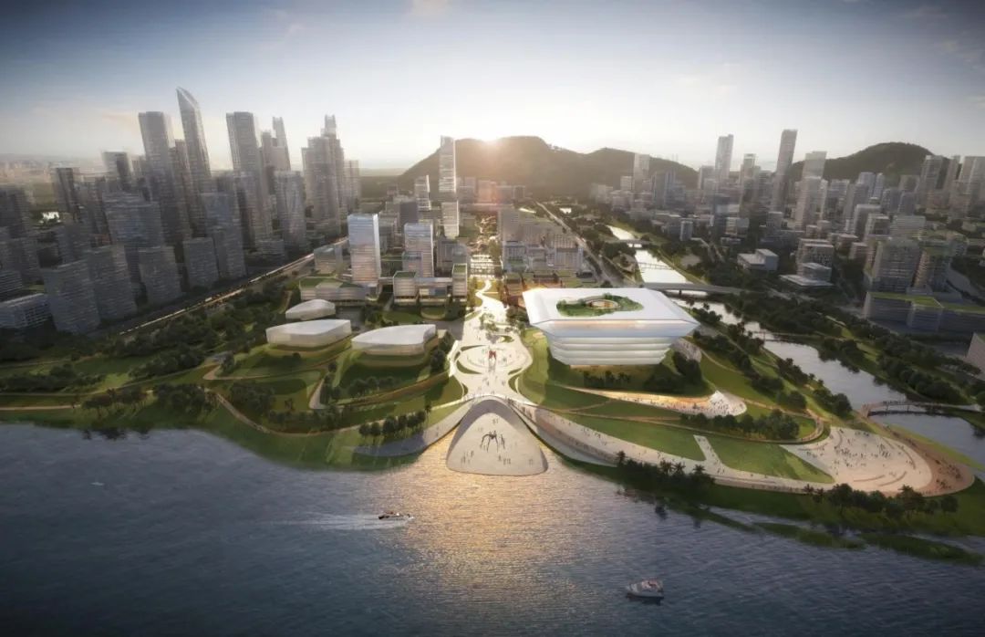“该方案以‘海上的云’的概念,展现‘漂浮的建筑’的理念……轻柔、自由的建筑形态,与大鹏半岛独特的环境风貌紧密融合,有机连接起周边山、海、湿地和城市景观,形成陆地与海洋的有趣对话。