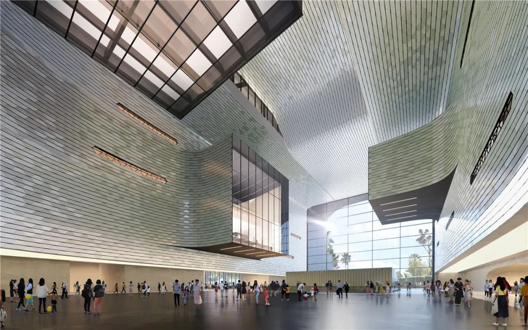 方案以抽象和具象相结合的方式回应场地和命题,从城市、山、海多维角度思考,以音乐与大海的相遇、建筑拥抱音乐、拥抱大海为主要创意,极具原创性。建筑造型兼具灵动性和冲击力;布局上将展演空间和音乐聚落空间结合设置,从而创造出全天充满活力、属于市民的公共活动空间;光线通过创新的水波纹玻璃板折射至室内,营造造出梦幻的光影效果。深圳歌剧院将建筑融入海滨,将艺术融入生活,创造了一个属于大湾区,具有未来性,独一无二的世界级公共文化地标。