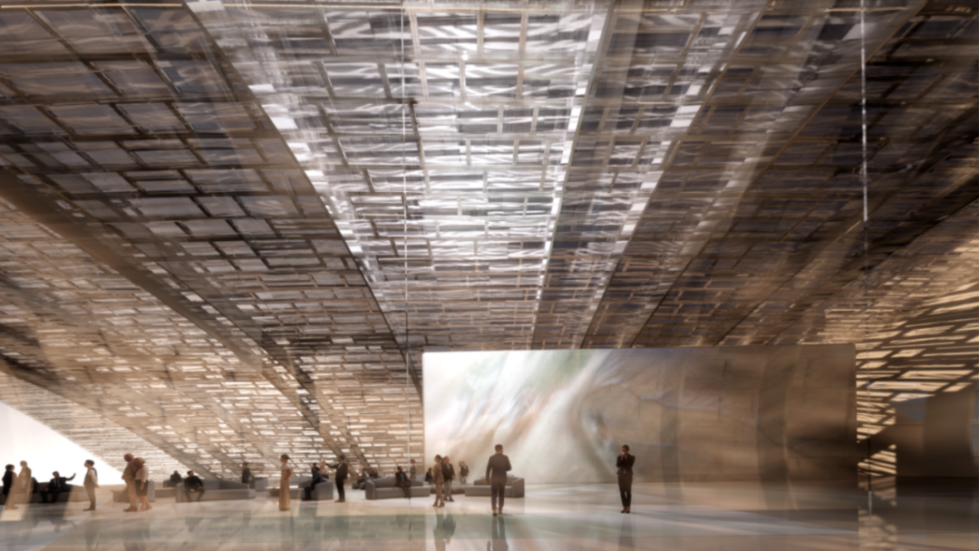 轻质界面材料透明与半透明的处理,随着环境与视角的转变而不断变化,展现‘云’的特质。连续的无柱空间使博物馆每个功能区间之间既相互独立又形成有机的连续,创造了一种具有未来感的空间体验。”
